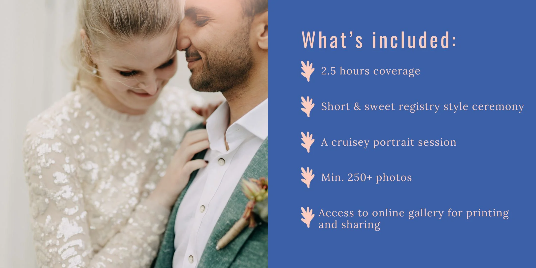 This one is 2.5 hours of joy celebrating your love with a carefully selected group of your best people.